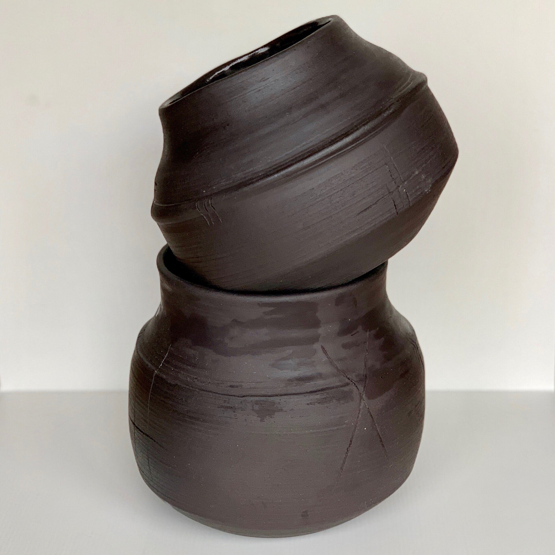 vervaardigd met zwarte klei en afgewerkt alleen aan de binnenzijde met glanzend glazuur. Waterdicht